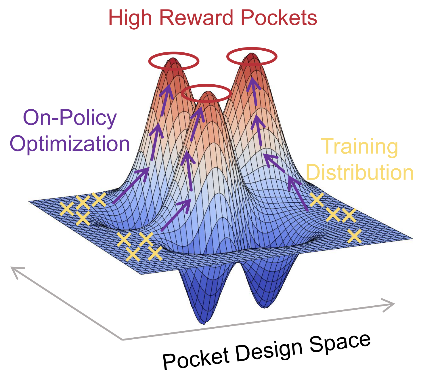 Designing protein pockets that target specific ligands is crucial for drug discovery and enzyme engineering. Although deep generative models show promise in proposing high-quality pockets, they are usually trained purely to match the data distribution and therefore overlook key biophysical properties, such as binding affinity, expression, and solubility, that ultimately determine developability and success. We introduce PocketX, an online reinforcement learning framework that explicitly aligns a generative model with desired biophysical properties. The framework first trains a base model that co-designs pocket structures and sequences conditioned on a target ligand, and then fine-tunes this model with Group Relative Policy Optimization (GRPO) to reward the desired attributes. Because GRPO employs group-relative rewards, it produces lower-variance policy updates, resulting in more stable and efficient learning than competing alignment strategies. Evaluated on the CrossDocked2020 benchmark, PocketX surpasses existing methods in metrics such as binding energy and evolutionary plausibility. Ablation studies further show that GRPO outperforms alternative alignment strategies, including Direct Preference Optimization (DPO), confirming GRPO’s effectiveness for biophysical property alignment.
